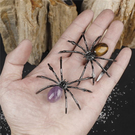 Handcrafted Natural Crystal Tiger's Eye Amethyst Spider